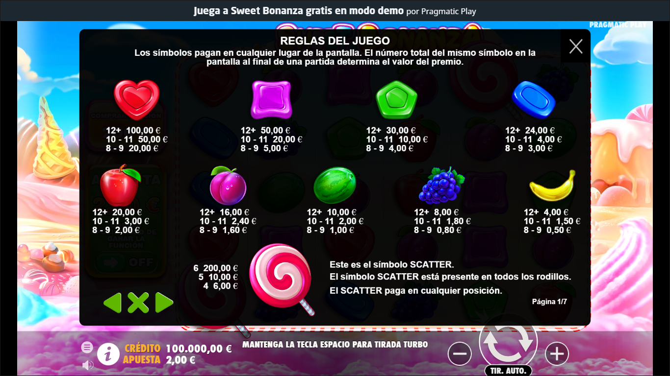 La mecánica y sus reglas de Sweet Bonanza son simples:
