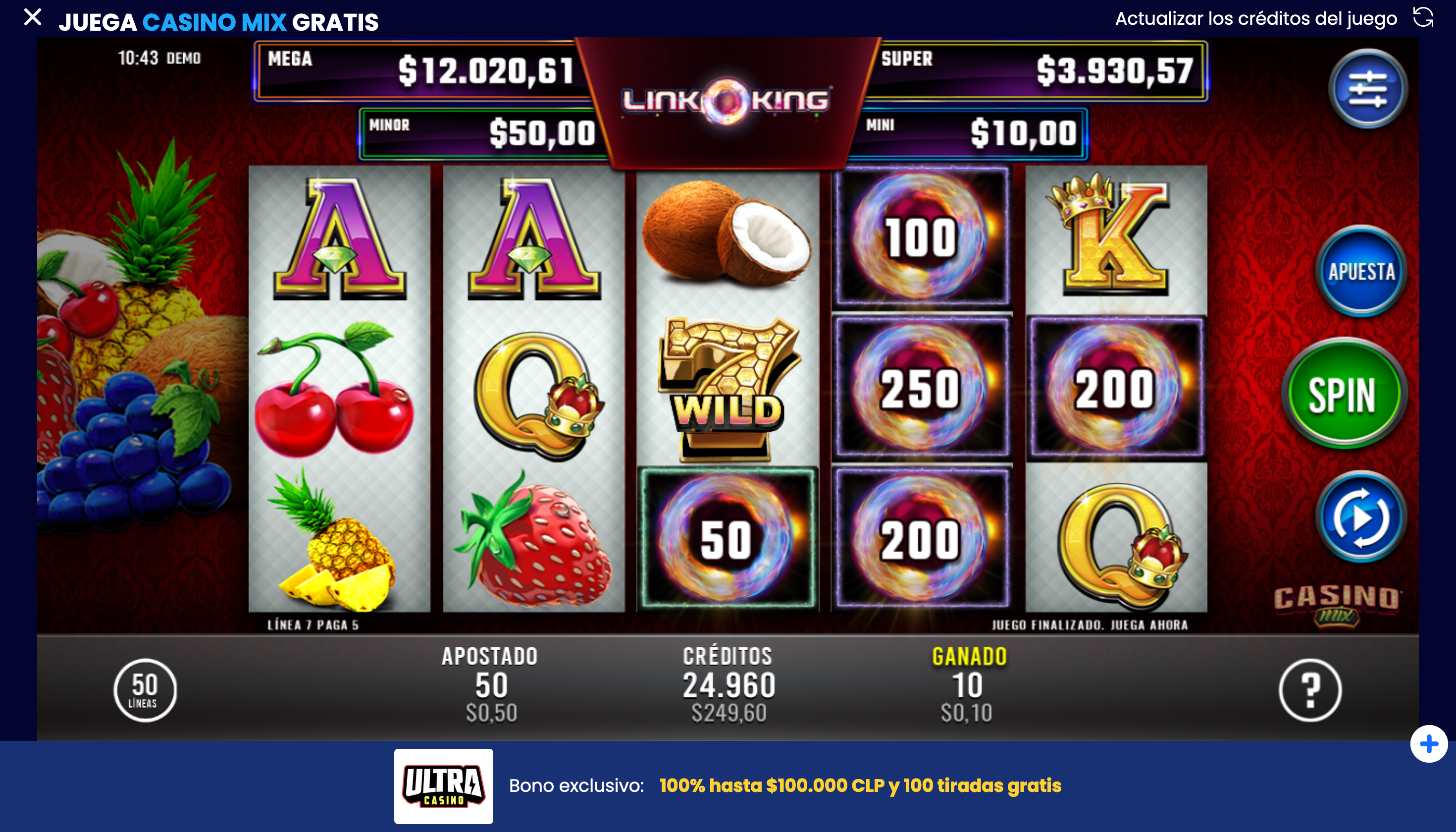 En Casino.cl podrás encontrar la mejor oferta de casinos online donde podrás jugar los juegos de la serie Link King de forma segura y confiable. También puedes probar otros títulos similares, contamos con 14.000 juegos gratis.